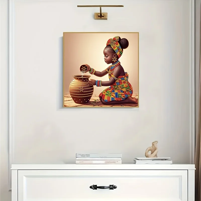 This serene canvas wall art captures a graceful portrait of a girl with her water jar, reflecting a quiet moment of simplicity and calm. Soft tones and gentle expression create a soothing visual presence, perfect for any space. A timeless piece that brings warmth, culture, and understated elegance to your home.