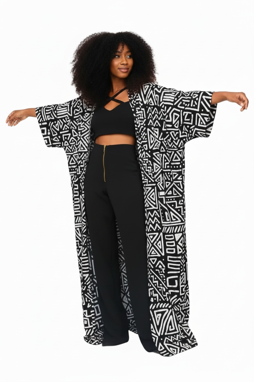 Add a statement layer to your outfit with this beautifully designed Ankara kimono. Featuring vibrant prints and a relaxed, flowing fit, it blends traditional African patterns with modern everyday style.